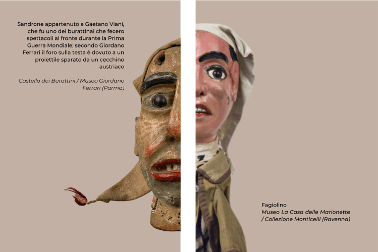Questi due personaggi sono peraltro presenti nei teatrini di tutti gli artisti tradizionali attivi in Emilia Romagna. Su questa scia i Musei di ReTeFì propongono un’inusuale mostra, costituita da una selezione dei numerosi burattini di Sandrone e Fagiolino facenti parte delle loro raccolte.